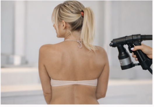 e-bronce Flash es un sistema profesional de bronceado sin sol, diseñado para centros de estética y emprendedoras, que combina tecnología de aplicación, producto específico y formación especializada.